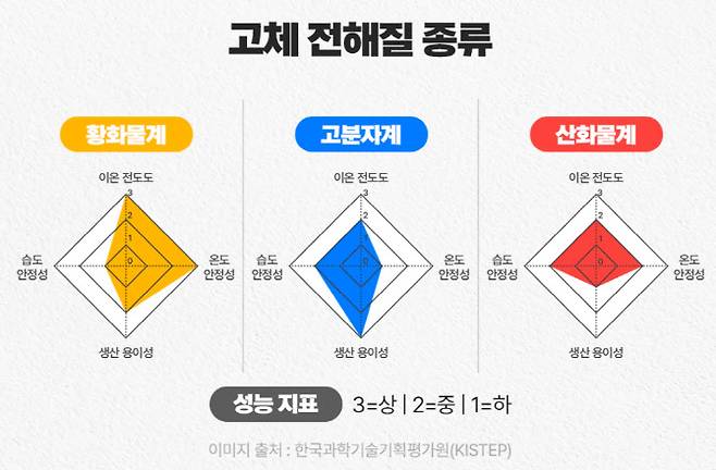 폴리머계 전해질은 기존 액체 전해질 기술과 유사해 활용도가 높다는 장점이 있다. 또 제조 공정도 비슷하기 때문에 비용 경쟁력도 갖추고 있다. 앞선 황화물, 산화물계 전해질에 비해 폴리머계 전해질 원재료는 구하기가 상대적으로 용이해 대규모 생산에도 적합하다. 다만 가장 중요한 요소로 꼽히는 이온 전도도가 낮다는 것은 문제다. 이론적으로는 상온에서 합리적인 이온 전도도를 가진 것으로 보고가 되긴 했지만, 아직 이를 상용화할 방법을 찾지는 못한 상태로 알려졌다.