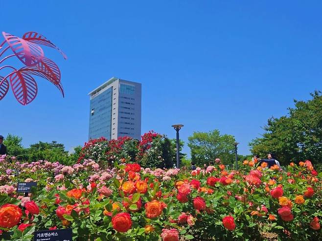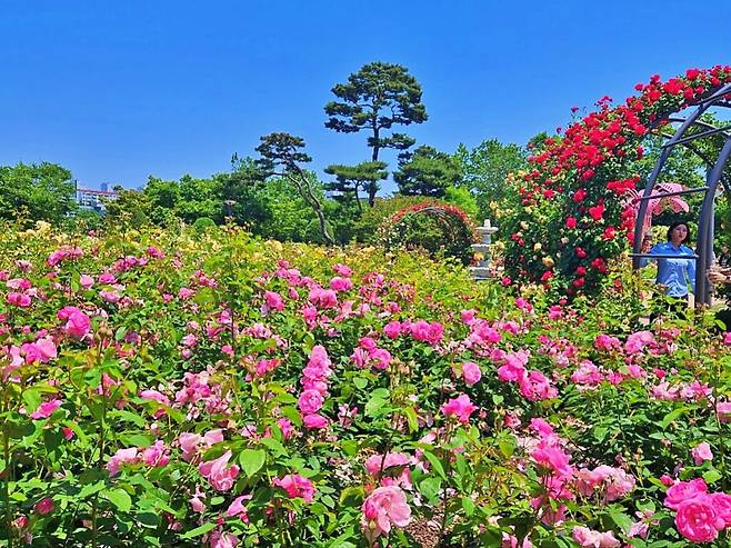 장미원 내에는 지난해 새롭게 조성된 ‘사랑의 서약’ 포토존과 장미터널, 조형물 등이 어우러져 다채로운 볼거리를 제공한다.