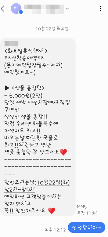 당일 구매한 싱싱한 홍합에 가격도 2인 6천원이면 저렴한 거 같아 신청했었는데요.. ㄷㄷㄷㄷ