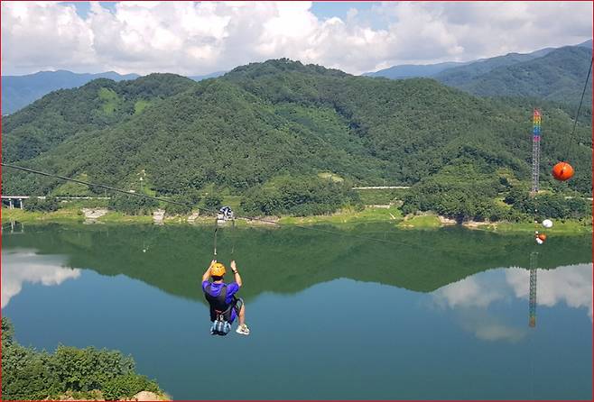์ด๊ณณ์ ๋จ์ํ ์ฐ์ฑ ๋ก์ ๊ทธ์น์ง ์์ต๋๋ค. ๊ทผ์ฒ์๋ ๊ตญ๋ด ์ธ๊ณต ๊ตฌ์กฐ๋ฌผ ์ค ์ต๊ณ ๋์ด์ธ 94m์์ ์์๋๋ ์ง์์ด์ด(์ง๋ผ์ธ) ์ฒดํ๊ณผ