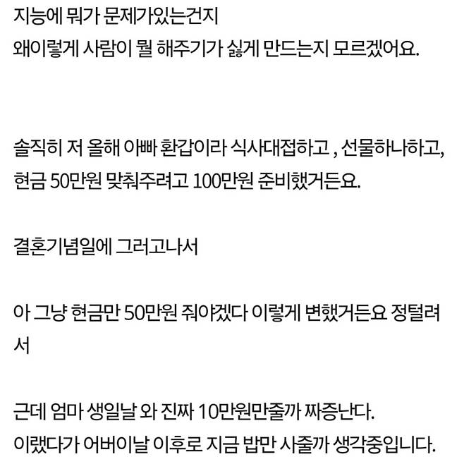 뭘 해드릴 때마다 짜증나는 부모님반응 지능문제일까요?..