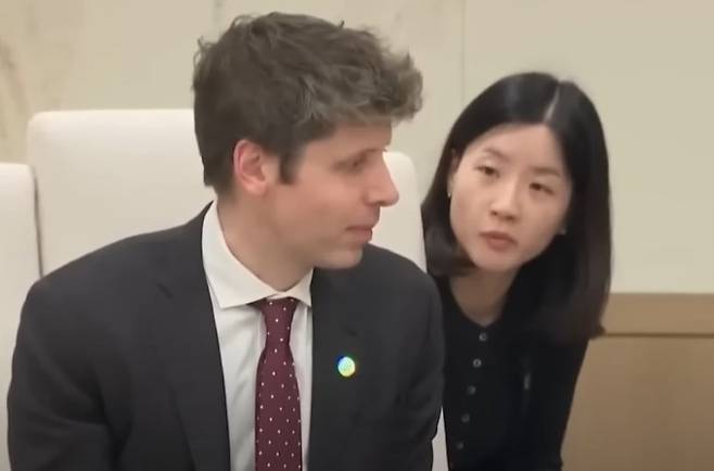 이번 접견에서 강한 인상을 남긴 여자 통역사가 누구인지 정체와 신상에 대한 관심도 상당히 높은데요. 회담 이후 누리꾼들은 그녀의 정체를 추적했고, 그가 대통령실 전담 통역사가 아닌 오픈AI 샘 알트만 측이 고용한 통역사라는 추정도 나왔는데요.