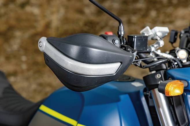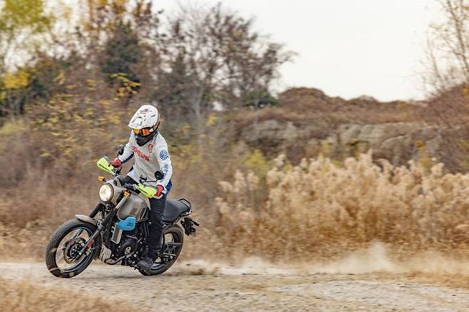 특히, 요즘 새롭게 출시하는 바이크의 경우 진동을 억제하기 위해 노력하지만 스크램 411은 특유의 엔진 진동과 소리를 라이더에게 솔직하게 전달한다. 확실히 스크램 411의 기반이 된 히말라얀의 감각과 흡사하다. 하지만, 정지 상태에서 클러치를 붙이고 움직이기 시작하면 이전에 느끼지 못했던 경쾌함을 체감할 수 있다. 411cc 공랭 엔진의 최고출력은 24마력으로 동급 대비 다소 아쉬운 수준인 것이 사실이다. 하지만 베이스가 된 히말라얀보다 14kg이 가벼운 만큼, 솔직히 ‘14kg의 차이가 이렇게 큰가?’ 싶은 생각이 들 정도로 색다른 가속력을 선보인다.