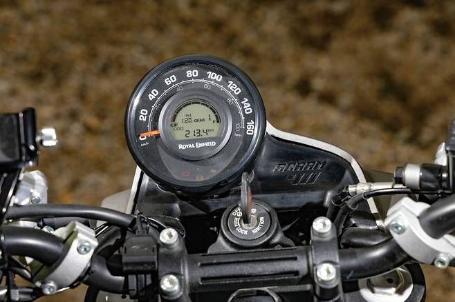 처음에는 의심부터 들었다. 로얄엔필드의 어드벤처인 히말라얀을 베이스로 스크램블러를 출시했다는데 디자인이나 구성이 히말라얀과 별 다르지 않다고 느껴졌기 때문이다. 전후 휠사이즈가 변경된 점을 제외하면 스크램블러장르에 맞게 추가된 스타일 요소가 전부라고 생각했다. 하지만 시승 전에 제원표를 확인하고 기대감이 커졌다. 히말라얀의 411cc 공랭 엔진이 그대로 적용되어 최고출력, 최대토크를 동일하게 발휘하지만, 차량 중량은 각각 199kg, 185kg으로 스크램 411이 14kg가량 가볍기 때문이다.