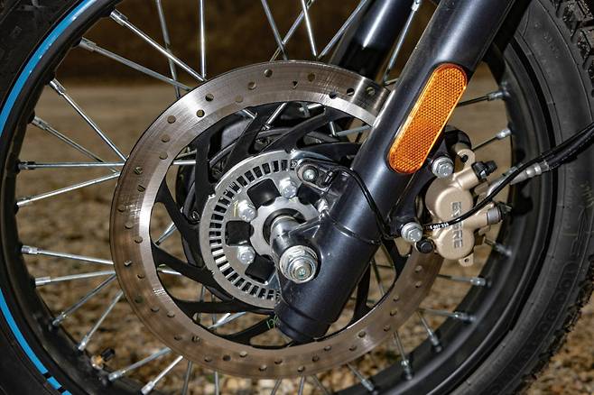 전반적으로 꽉 조여진 감각이 아니지만, 라이더의 의도대로 방향을 틀고 선회하는 동작이 자연스럽다. 순정으로 적용된 CEAT 듀얼 타이어는 도로주행의 비중이 크기 때문에 블록 패턴임에도 소음이나 진동이 적은 편이다. 일반 도로에서의 그립도 불만이 없다. 트랙션컨트롤이 탑재되어 있지 않지만, 기본적으로 깔린 차량 무게와 부드러운 토크 특성 때문에 리어 휠이 미끄러지는 상황이 거의 연출되지 않는다.
