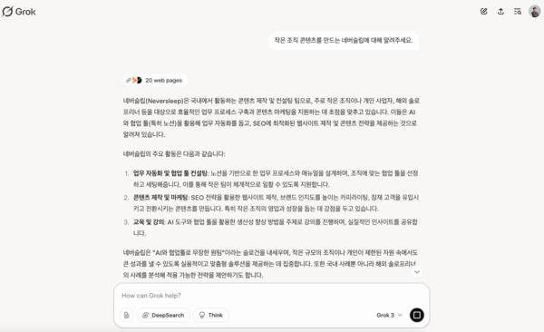 일론 머스크가 설립한 xAI의 Grok3에서도 웹검색이 가능
