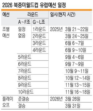 북중미월드컵 유럽예선은 유럽축구연맹(UEFA) 네이션스리그 등의 다른 대회 일정 탓에 지난 3월 뒤늦게 시작했다.