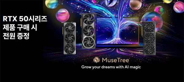 ASUS ROG RTX 50 시리즈 구매 고객은 ASUS에서 독점적으로 제공하는 MuseTree 생성형 AI 서비스를 무료로 사용할 수 있다. 추가적인 구독료를 지불하지 않아도 되고 인터넷 연결이 필요없는 로컬 PC 작동이 특징이다. 또한 어도비 클라우드 1개월 무료 이용도 지원한다.