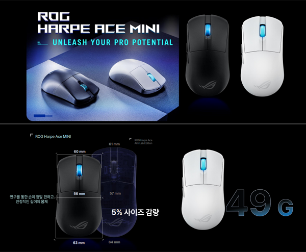 그 밖에 동양인 손에 맞춰 5% 사이즈를 줄이고 무게는 49g까지 가벼워진 게이밍 마우스 ROG HARPE ACE MINI와 래피드 트리거의 빠른 반응 속도에 컴팩트한 디자인, 듀얼 USB-C 포트로 설치가 자유로운 ROG FALCHION ACE HFX 게이밍 키보드, 새로운 ROG DESTRIER CORE 및 ROG AETHON FABRIC Edition 게이밍 의자도 소개했다.