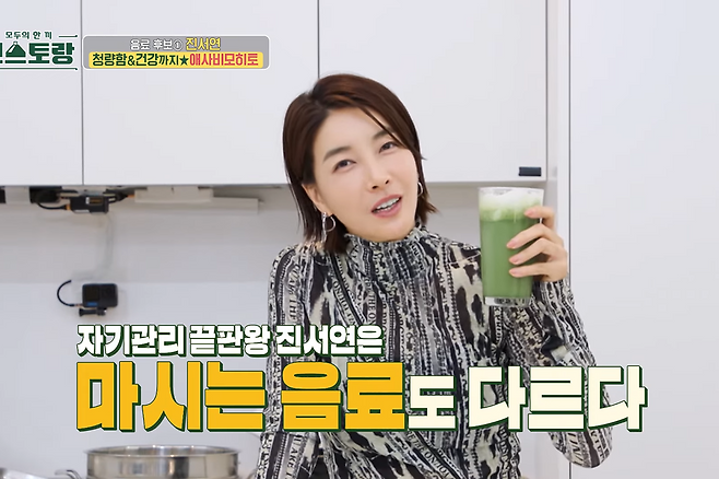 진서연은 방송에서 애플민트, 라임, 탄산수에 애사비를 더한 ‘애사비모히토’를 선보였다.