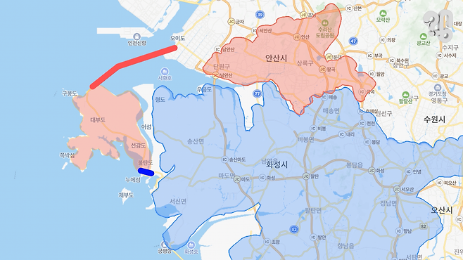 대부도와 육지를 잇는 탄도방조제가 화성과 연결되고, 이어 시화방조제가 시흥과 이어지면서 대부도는 화성·시흥·안산과 모두 맞닿는 구조가 됐다.