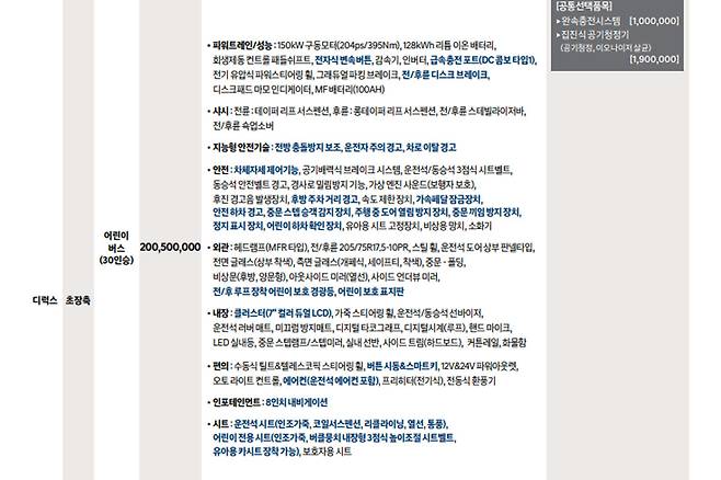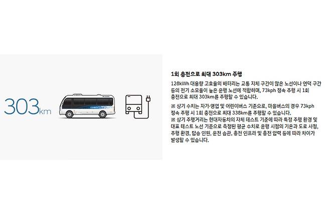 직장인과 학생을 가리지 않고 모두 고려하는 것이 공통으로 있다면, 바로 출퇴근/등·하원 거리다. 이 거리가 멀수록 삶의 질이 급격히 떨어진다고들 하는데, 조금 먼 거리에 있는 학원 또는 유치원에 통학하는 학생을 고려해 학원 차/유치원 버스를 운영하기 마련이다. 그런데, 기존 카운티 일렉트릭의 공식 홈페이지상 소개를 살펴보면 의아한 대목이 있다. 마을버스와 어린이 버스의 주행 가능 거리가 다른 것이다.