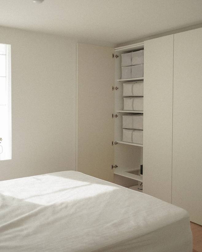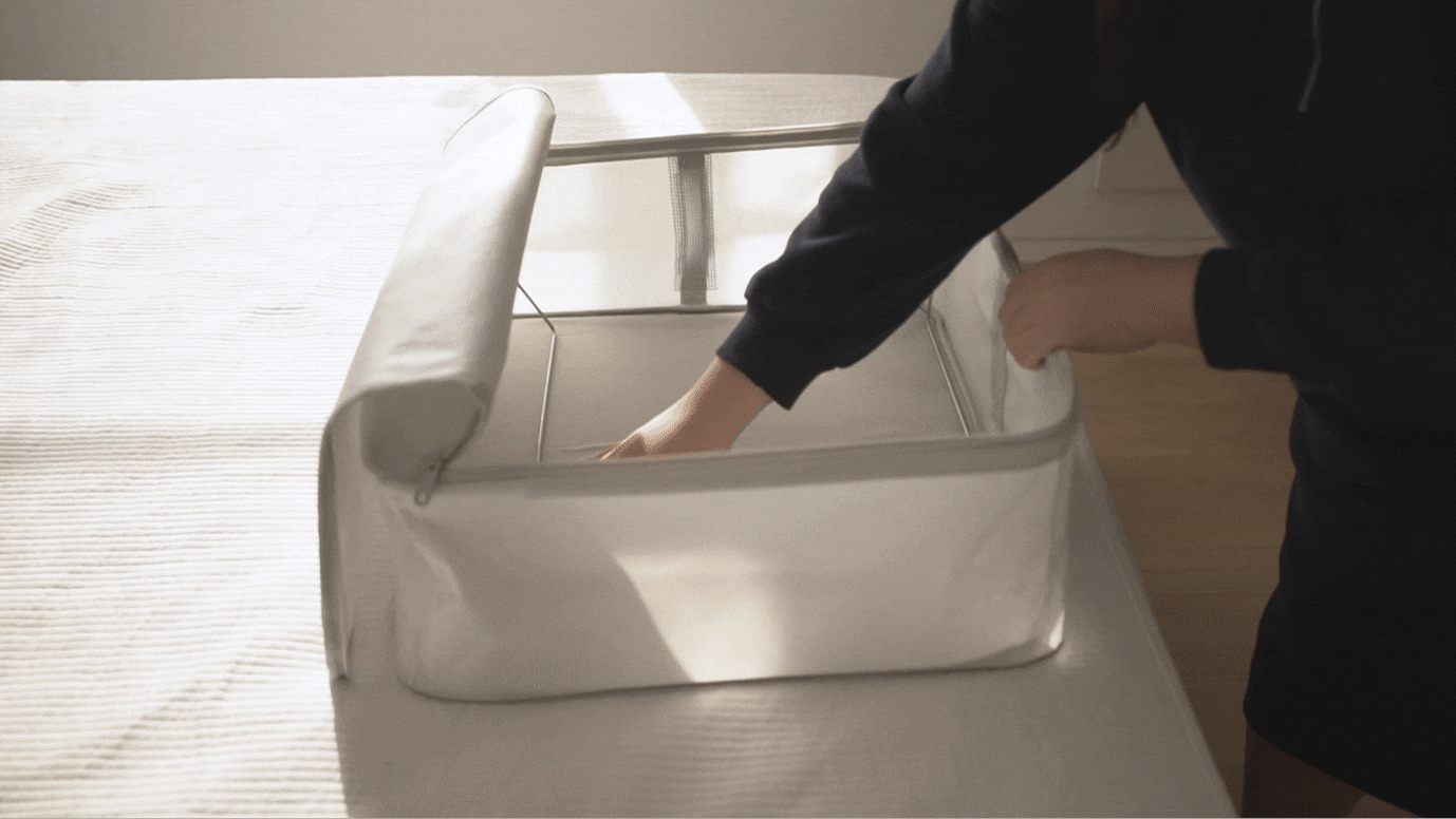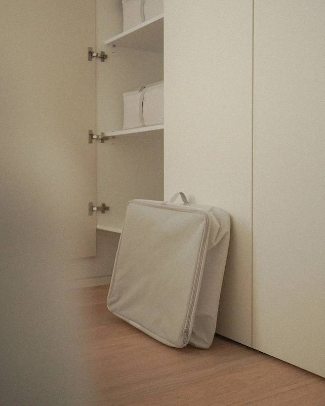 사용하지 않을 때(예를 들면 이불을 꺼내 쓰고 있을 때) 이렇게 접어 보관하면 됩니다. 수납 공간을 더 효율적으로 사용할 수 있겠죠!