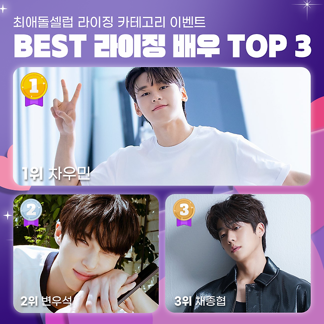 배우 팬덤 대표 앱인 최애돌셀럽에서 지난 5월 24일부터 6월 5일까지 진행한 2024년도 상반기 라이징 스타 투표에서 배우 차우민이 ‘선재업고튀어’를 통해 최고의 스타로 떠오른 배우 변우석을 제치고 1위를 차지하기도 했습니다.