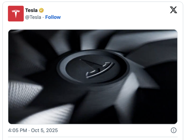 테슬라는 지난 주말 동안 소셜미디어(SNS) X 계정을 통해 신차 출시를 예고했다. 한 영상은 테슬라 로고가 새겨진 차량 부품의 모습이 빠르게 회전하는 모습을 보여줬다. 이 영상에는 ’10/7’라는 문구로 끝나서 10월7일 새 차량이 공개된다는 의미로 해석됐다. 두 번째 영상은 어둠 속에서 자동차 헤드라이트가 빛나는 모습이 담겨서 호기심을 자극했다.