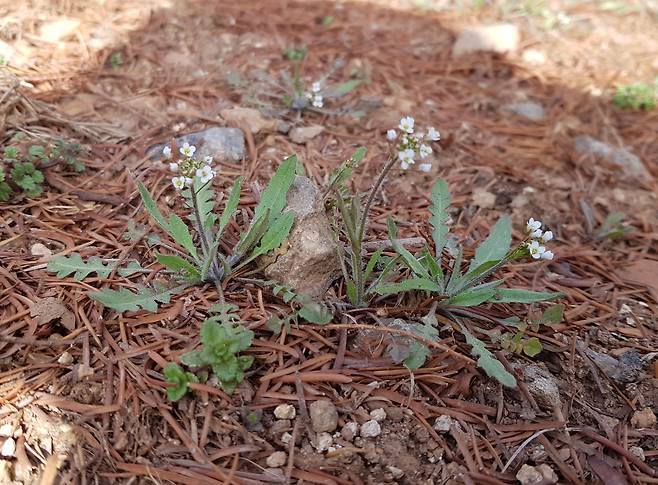 봄나물로 익숙한 냉이는 나이, 남새, 남수 등 다양한 이름으로 불린 고유한 이름이에요. 냉이는 배추과(=십자화과)의 식물로 우리가 잘 아는 유채, 갓, 배추와 같은 친척 식물이죠. 냉이는 특유의 쌉싸름한 향이 있어서 냉이 역시 꽃이 피기 전에도 쉽게 구분할 수 있답니다. 참! 냉이 뿌리가 달고 맛있는 이유는 로제트와 관련이 있어요. 추운 겨울을 버티기 위해서 냉이는 뿌리에 당분을 저장하는데, 꽃이 피는 봄이 오면 이 에너지를 쓴답니다. 그래서 꽃이 핀 냉이 뿌리는 질기고 맛이 없어지죠.