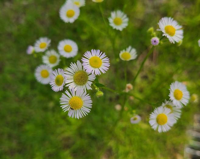 개망초는 일제 강점기에 들어온 식물이라 나라가 망(亡)할 때 들어온 풀(草)이라는 뜻과 기존 식물보다 못한 식물에 붙이는 접두어 ‘개’가 붙어서 개망초라고 불려요. 개망초는 잎, 줄기, 뿌리에서 다른 식물이 잘 자라지 못하게 하는 화학물질을 뿜어요. 그리고 날개 달린 씨앗으로 빠르게 퍼져나가서 넓은 풀밭을 보면 개망초를 쉽게 찾을 수 있답니다. 개망초의 꽃은 계란후라이를 연상케 해요. 꽃이 피기 전에 개망초를 먼저 찾아봐요
