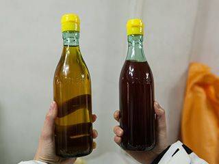 참기름병을 위아래로 충분히 흔들면 표면에 작은 거품이 형성됩니다. 진짜 참기름은 점도가 높고 천연 성분이 충분히 유지돼 있기 때문에 거품이 쉽게 사라지지 않고 일정 시간 유지되며, 표면에 얇은 막이나 층이 형성되는 특징을 보입니다. 이는 가공되지 않은 참깨의 지방 성분이 가진 자연스러운 반응으로, 오래된 전통 방식의 참기름에서도 흔히 관찰되는 모습입니다.