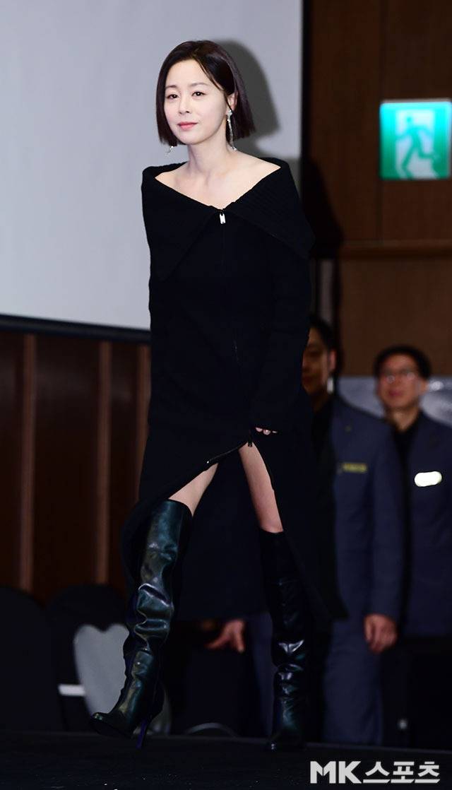 여기에 서영희는 블랙 롱부츠를 신어 멋스럽고 스타일리시한 코디를 완성했습니다.