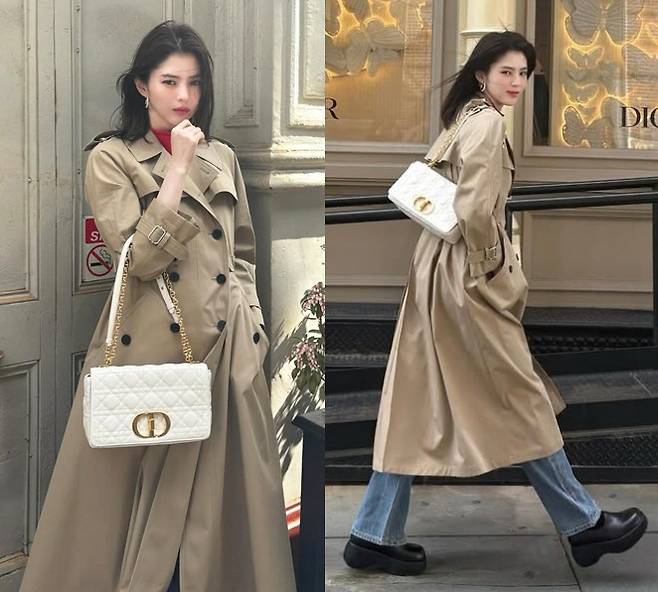 클래식한 베이지 트렌치코트를 걸친 채 등장한 한소희는 허리 벨트를 자연스럽게 연출해 흐르듯 떨어지는 실루엣으로 여유로우면서도 고급스러운 무드를 뽐냈습니다.