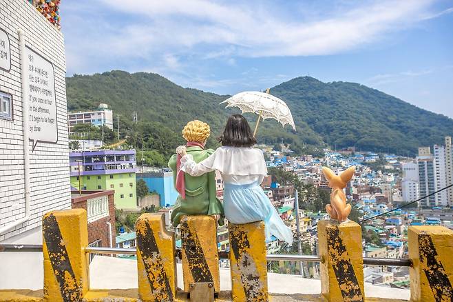 특히 감천문화마을의 하이라이트는 어린왕자 동상과 함께 사진을 남겨보는 것인데요. 감천문화마을 입구 우측 안내센터에서 마을 지도를 '무료'로 받아 주요 포토존과 카페를 찾아 탐방하는 재미도 느껴보세요.