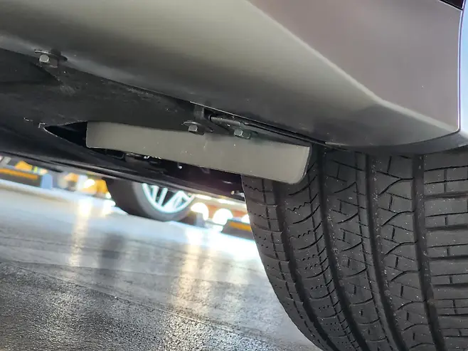 보통 타이어 뒤쪽에 설치되는 '머드 가드'와 혼동하기 쉬운데 앞쪽에 달리는 이것은 차량 하부로 들어오는 공기의 흐름을 제어하여 효율성을 끌어 올리는 역할을 합니다.