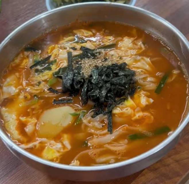 면발은 칼국수치고 얇고 부드러워 국물과 자연스럽게 어우러진다. 여기에 계란이 풀어져 부드러움을 더하고, 김가루와 참깨가 곁들여져 고소한 풍미가 퍼진다. 첫 국물 한입에 속이 따뜻하게 풀리고, 꾸준히 이어지는 감칠맛이 마지막까지 젓가락질을 멈출 수 없게 한다.