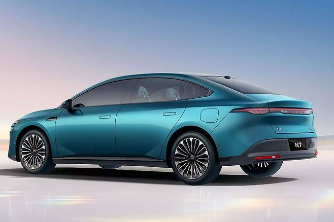 N7은 과거 에포크(Epoch) 콘셉트에서 영감을 받은 디자인으로 전면에는 얇은 라이트바와 독특한 송곳니 형태의 헤드라이트를 장착했다. 차체는 유려한 라인과 매끄러운 도어 핸들, 투톤 휠 등 현대적이면서도 중국 시장의 취향에 맞춘 설계가 돋보인다.