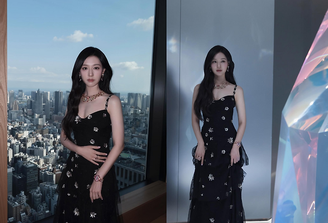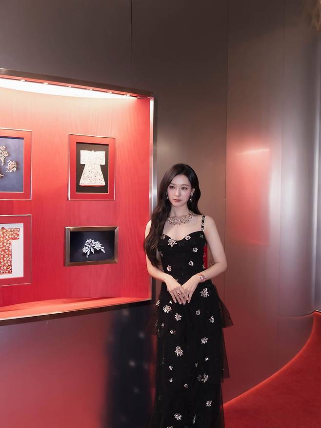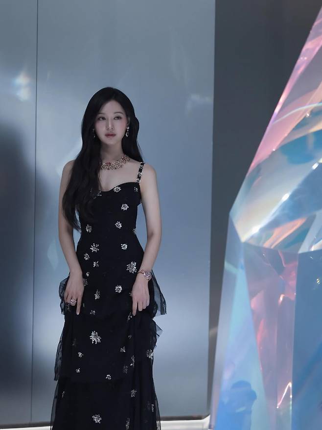 사진 속 그녀는 은은한 자수가 놓인 블랙 튤 드레스를 입고, 수십억 원을 호가하는 불가리의 하이 주얼리 컬렉션을 완벽하게 소화했습니다.