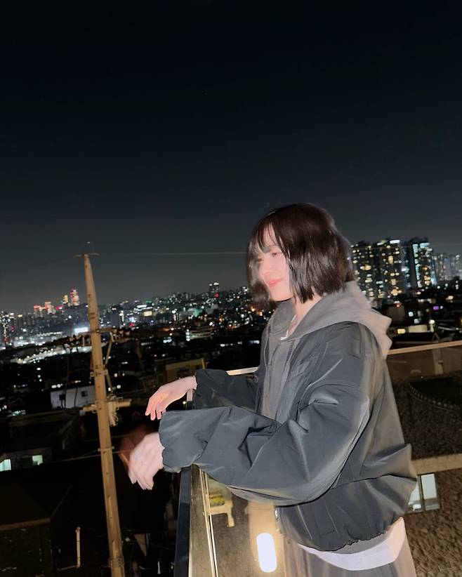 윤소희는 도시의 밤을 배경으로 블랙 재킷과 그레이 후드티를 매치해 편안하면서도 시크한 분위기를 연출했다. 여기에 자연스럽게 떨어지는 실루엣이 돋보이는 재킷은 활동성을 강조하며, 캐주얼한 무드와 세련된 도시 감성을 동시에 담아냈다. 그녀의 손끝까지 이어지는 여유로운 포즈가 스타일의 완성도를 높이고 있다.