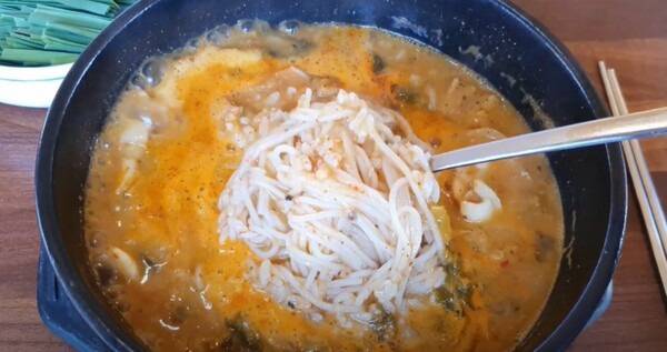 된장 베이스에 시레기와 무가 들어가 구수한 맛을 낸다. 고추와 부추, 들깨가루를 넣어 먹으면 더욱 시원하고 얼큰한 맛이 나 한층 더 원기 보충이 되는 것만 같다.