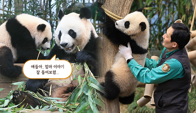 정말 현명한 판다 엄마 아이바오가 쌍둥이들에게 할 법한 말이네요 ㅠㅠ 아이바오는 어린 아가들을 키우며 저런 것들을 가르쳐주고 있을지도 모르겠습니다. 이제는 독립한 푸바오도 아이바오가 많은 것들을 가르쳐주었기에 어엿한 어른 판다로 자라나고 있는 것이겠지요.