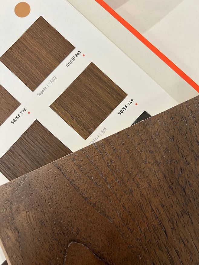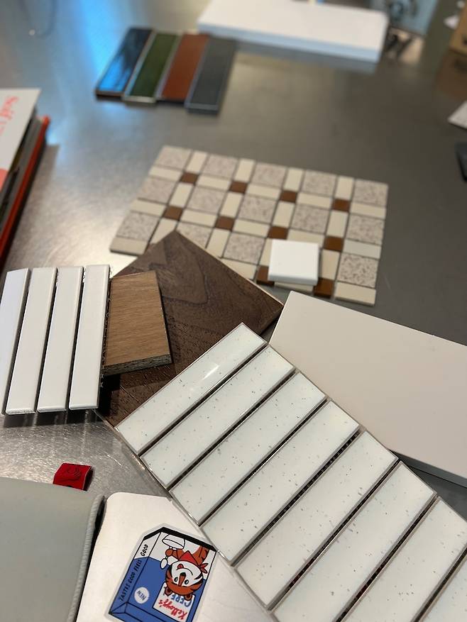 샘플북으로 작게 보는 것과 실제 시공된 모습은 꽤 차이가 있어서 그래도 크게 볼 수 있는 쇼룸에 방문해서 확인한다면 실제 시공했을 때와 차이를 줄일 수 있답니다.