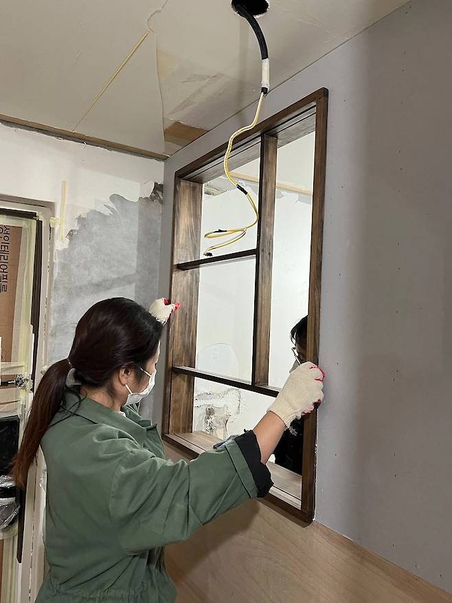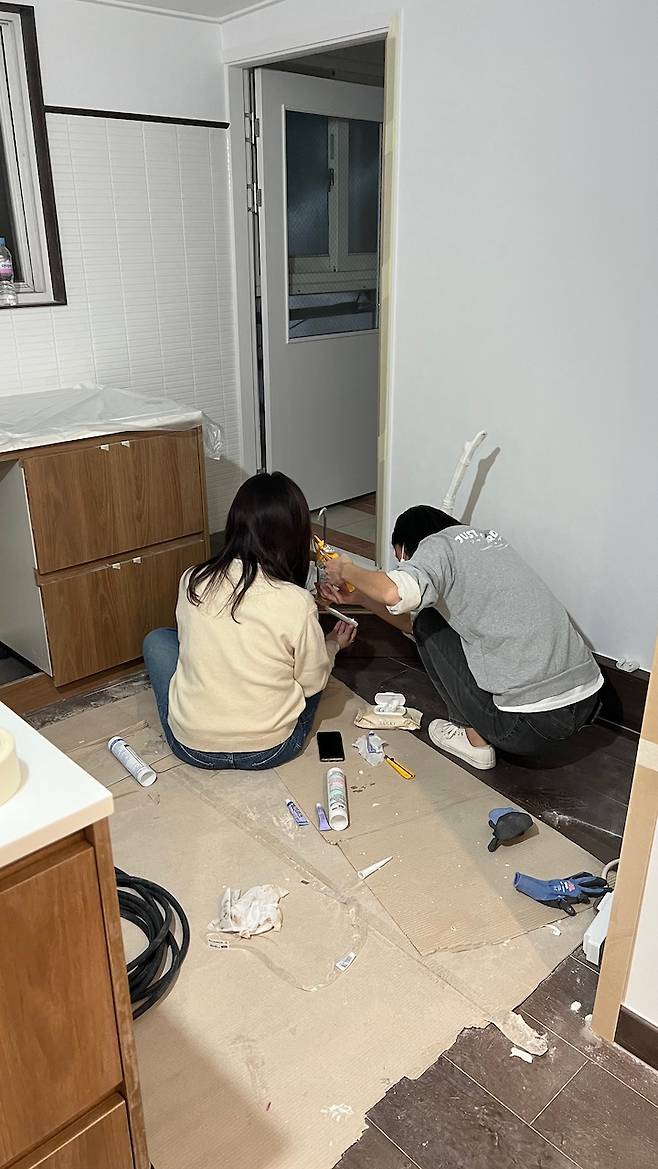 마무리까지 직접 꼼꼼하게 시공해 주시던 능력자 실장님들 정말 감사드려요.좋아하는 건 많지만 취향이 확실한 편이라서 에디터님 제안을 받고 과연 내 이야기가 도움이 될까 싶어서 많이 망설였는데 오늘의집을 자주 보는 저희 직원이 자기가 보았던 어떤 집보다 예쁘다고 응원해준 덕분에 용기를 내어 저희 집을 소개할 수 있게 되었어요. 제가 인테리어를 하면서 경험한 내용들을 최대한 자세하게 알려드릴게요.