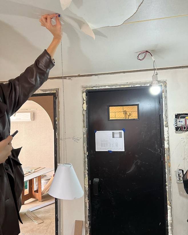 그런데 코로나로 배송이 지연되면서 조명 위치를 잡는 날까지 배송이 오지 않을 것 같아서 결국 종이와 실로 비슷한 사이즈를 만들어서 위치를 잡았어요. 너무 꼼꼼하게 체크한다고 싫어하지 않으실까 걱정했는데 오히려 실장님들이 웃으며 너무 좋은 아이디어라고 해주셔서 감사했어요.