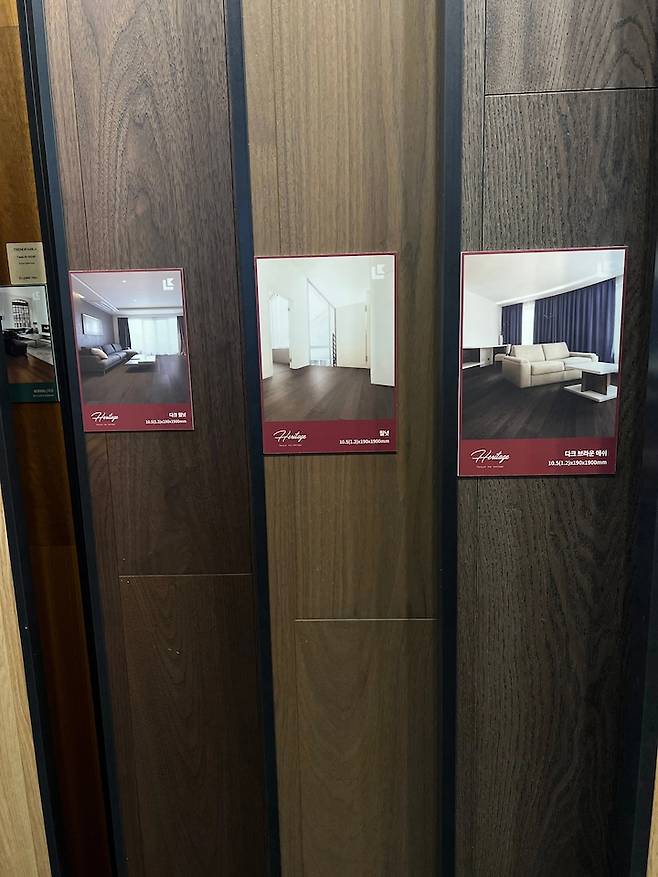 이 말을 듣고 바로 바닥재를 보러 구정마루 쇼룸을 찾았고, 후보 몇 개를 생각해두고 갔지만 고민한 시간이 무색할만큼 보자마자 바로 이거다! 하고 순식간에 정했어요.