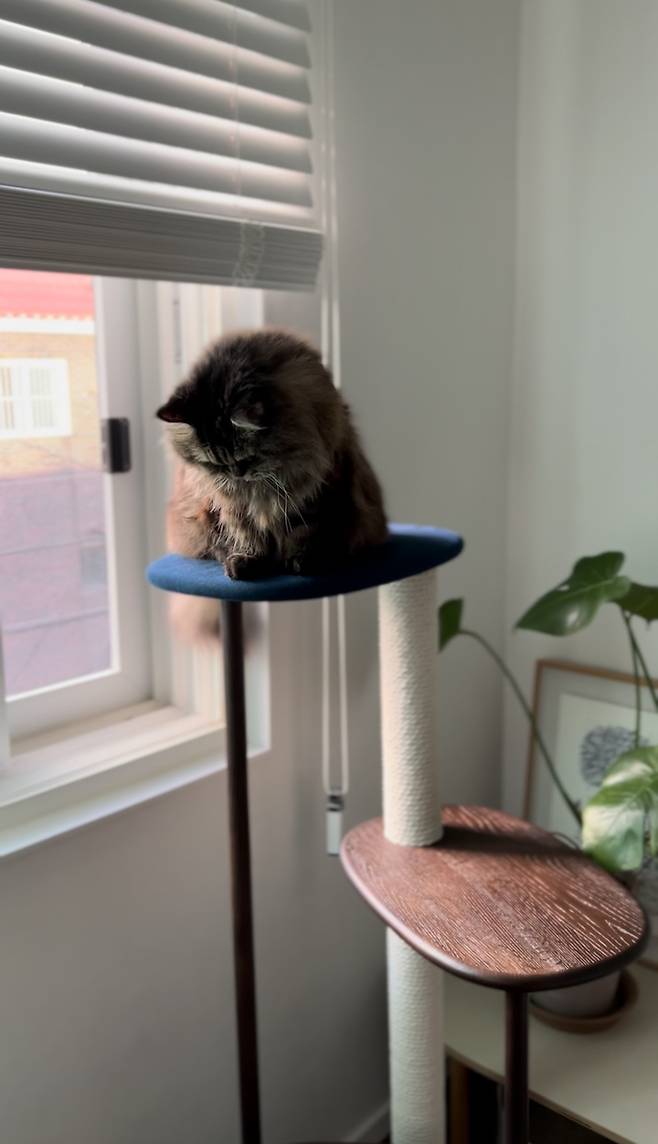 높은 곳에 잘 올라가지 않는 산시로이지만 혹시나 하는 마음에 이사하면서 캣타워를 사주었는데 역시나 잘 올라가지 않아서 덩그러니 놓여있을 때가 더 많아요. 그래도 1층은 잘 써주고 있답니다.