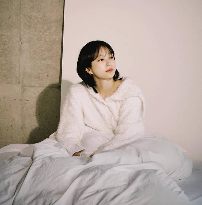 배우 안희연이 아늑한 실내에서 화이트 컬러의 포근한 가운을 연출하고 있다. 부드러운 촉감이 느껴지는 화이트 가운은 심플하면서도 편안한 분위기를 자아내며, 흰색 침구와 조화를 이루어 통일감 있는 스타일링을 완성했다. 짧은 단발 헤어스타일과 내추럴한 메이크업은 안희연의 자연스러운 아름다움을 돋보이게 하며, 콘크리트 벽과 화이트 컬러의 대비가 모던한 감성을 더하고 있다.