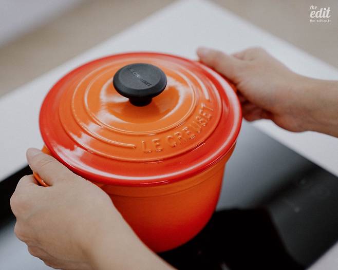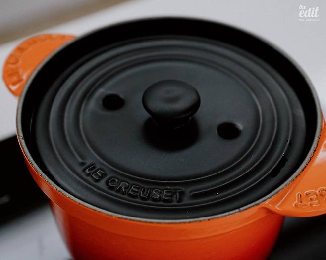 아마 직접 해보시면 “이렇게 금방 밥이 된다고?”하는 생각이 들 것이다. 도구가 좋기 때문이다. 르크루제의 무쇠 주물은 뛰어난 열 전도와 열 보유력을 자랑한다. 결국 똑같은 불로 조리했을 때 열을 흡수하고 전달하는 능력이 뛰어나기 때문에 식재료의 맛과 향, 식감을 살리면서도 조리 시간을 단축할 수 있다는 얘기다. 최소한의 수분을 이용하는 저수분 요리도 가능하기 때문에, 재료의 영양소 손실 없이 맛과 향을 살리고 싶다면 르크루제 냄비를 추천한다.