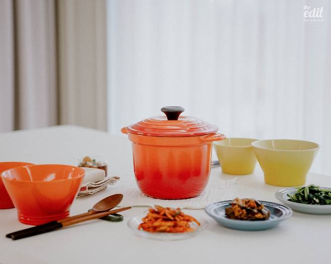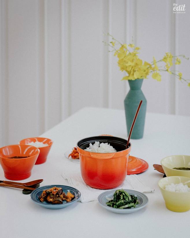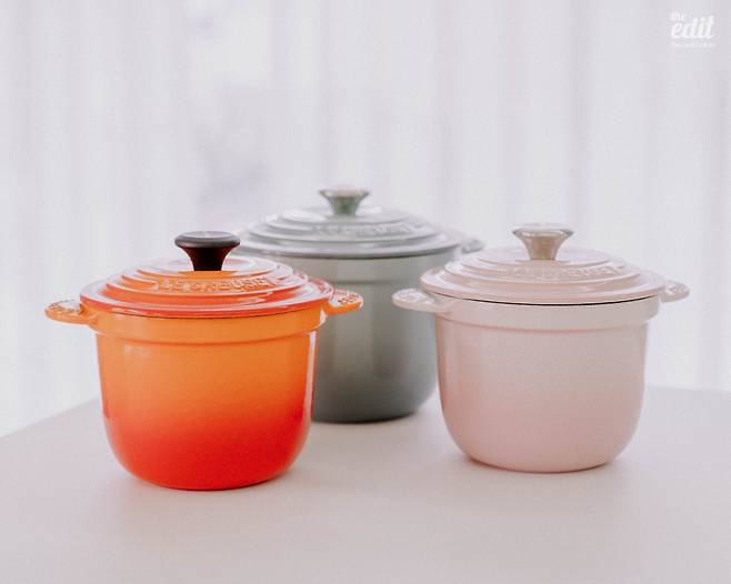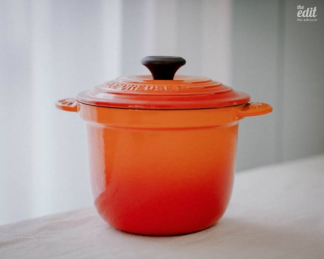 오늘 주인공은 프랑스 명품 키친 앤 다이닝 브랜드 ‘르크루제(LE CREUSET)’의 고메밥솥이다. 르크루제라는 이름은 다들 들어보셨으리라 생각한다. 무려 98년의 역사를 지녔으니까. 1925년 프랑스 북부의 작은 마을 프레노아 르그랑에서 무쇠 주물 전문가와 에나멜 전문가가 만나 시작되었다. 운명적인 만남이다. 열 전도와 보온성이 뛰어난 무쇠와, 무쇠의 불편함을 해결할 수 있는 에나멜 코팅이 만난 셈이니까. 덕분에 르크루제는 무쇠 주물냄비에 기술적인 향상을 도모하는 동시에 시그니처라고 할 수 있는 화사한 색감과 디자인을 갖춰가게 된다.