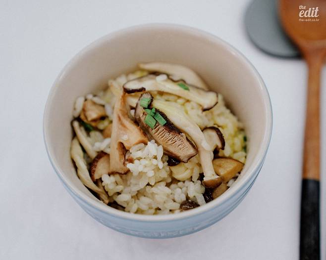 뜸들이기 전 먹기 좋게 썰어둔 버섯을 밥 위에 올리고 10분을 기다려준다. 뚜껑과 수분 커버를 열고 나면 기가막힌 버섯 향이 퍼진다. 잘 섞어서 한 입 먹어보니 은은한 단맛이 감돈다. 촬영을 함께 했던 지인 중 한 명은 맛있다며 5그릇을 먹었다.