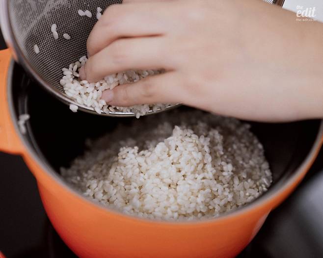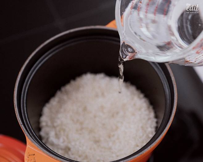 자, 이제 요리를 시작해볼까? 먼저 가장 기본인 백미 밥을 지어보자. 쌀은 물을 빠르게 흡수하는 성질이 있다. 쌀을 씻을 때 첫 물은 불순물이 가장 많기 때문에 빠르게 헹궈서 버려주는 게 좋다. 서 너 번 씻은 쌀은 20분 정도 불려주자. 여기까지 했다면 사실상 솥밥을 짓기 위한 가장 번거로운 과정이 끝난 셈이다.