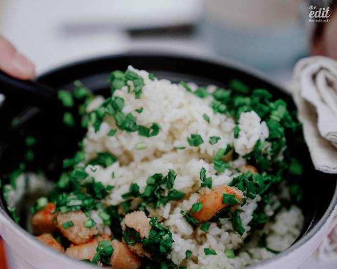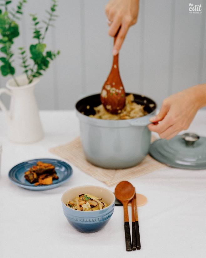 안녕, 에디터H다. 나는 요즘 솥밥에 푹 빠져있다. 혹시 이 글을 읽는 여러분 중에 단 한 번도 솥밥을 해보지 않은 사람이 있다면, 꼭 한 번 시도해보시길 추천드린다. 집에서 해 먹기엔 너무 어려운 요리 아니냐고 생각하실지도 모르겠다. 유명하다는 식당이나 한식을 베이스로 하는 와인바에서 마지막 메뉴로 생선이나 버섯을 올린 솥밥을 먹으며 ‘가장 가까운 천국의 맛’이라고 생각하곤 했다. 갓 지은 밥의 쌀알이 탱글하게 씹히는 맛이나, 여러 재료에서 우러나온 감칠맛이 마음의 허기마저 채워주니까. 이렇게 대단한 맛을 내가 직접 만들 수 있으리라곤 생각도 하지 못했던 것이다.