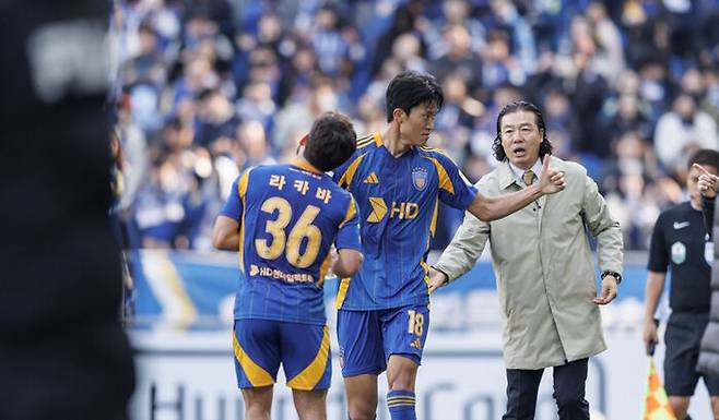 조현우가 뒷문을 든든하게 지킨 가운데 192cm 장신 공격수 허율이 멀티골을 쏘아 올리며 울산의 승리를 이끌었습니다.