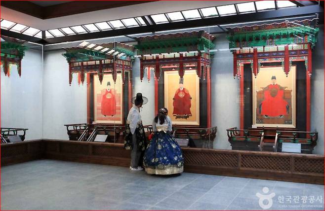 경기전 입장권으로 함께 관람할 수 있는 어진박물관은 꼭 들러야 합니다. 여름에는 시원한 에어컨 덕분에 잠시 땀을 식히기 좋은 곳이기도 하고, 무엇보다 교과서 속 임금들의 어진을 실제로 만나볼 수 있는 특별한 전시관이지요.