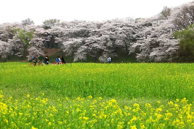 봄철 반월성의 또 다른 매력은 벚꽃과 유채꽃이 함께 만들어내는 색채 풍경이다. 성벽 아래 넓게 펼쳐진 유채꽃 군락지가 노란 물결을 이루며, 분홍빛 벚꽃과 대비되는 아름다운 봄 풍경을 만들어낸다. 이 독특한 색의 조합 덕분에 사진 촬영 명소로도 유명하다.