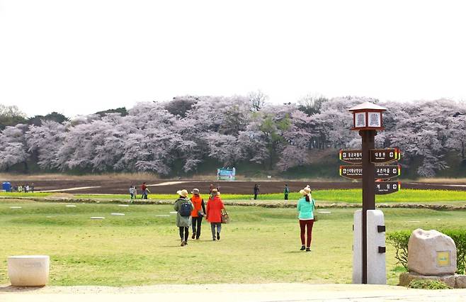 고분과 성곽을 따라 이어지는 벚꽃길에는 봄바람에 꽃잎이 흩날리며 고대 왕궁의 터를 부드럽게 감싸는 듯한 풍경이 펼쳐진다. 이 시기 경주를 찾는 여행객들이 꼭 들르는 대표적인 봄 풍경 가운데 하나다.
