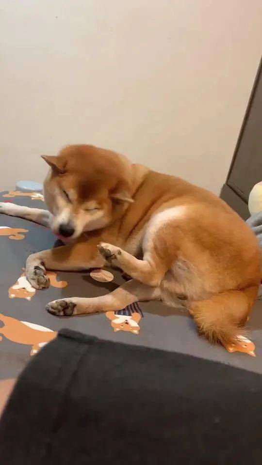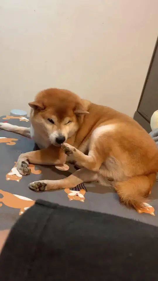 어느 날, 한 네티즌의 시바견은 편안한 침대 위에서 몸을 긁적이다가 문득 자신의 발 냄새를 맡고 싶어 졌습니다.