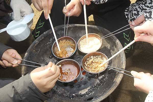 그냥 먹어도 꿀맛이지만 불에 살짝 구워 먹으면 더욱 부드럽고 맛있는 호박꿀 맛나! 고무 같은 식감을 주는 겉면 안에 들어있는 호박꿀은 한번 맛보면 한 봉지를 다 먹을 수밖에 없게 만드는 강력한 맛의 중독성을 갖고 있다. 한 입 베어 물면 위로 스물 스물 올라와 흘러넘치는 호박꿀을 보고 있노라면 입안에 침이 고였던 경험 한 번쯤은 있을 것이다.