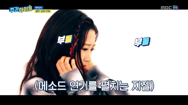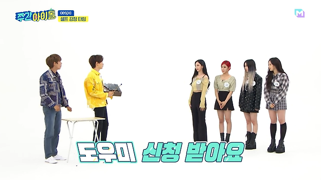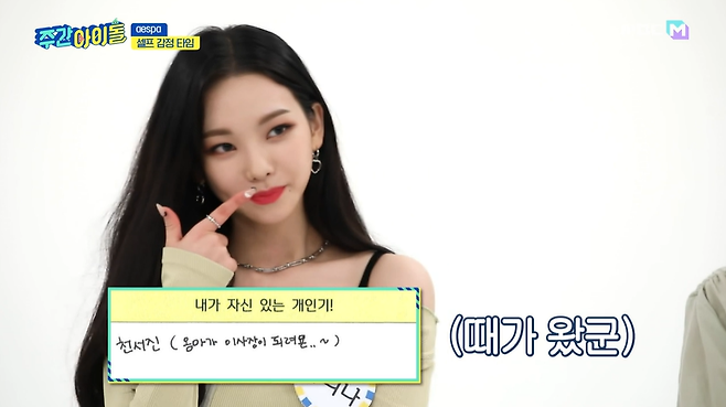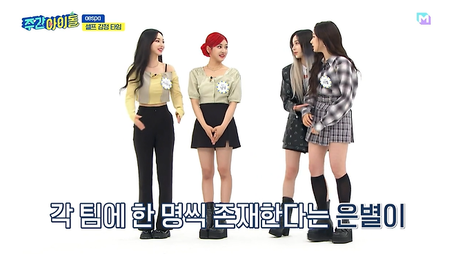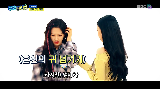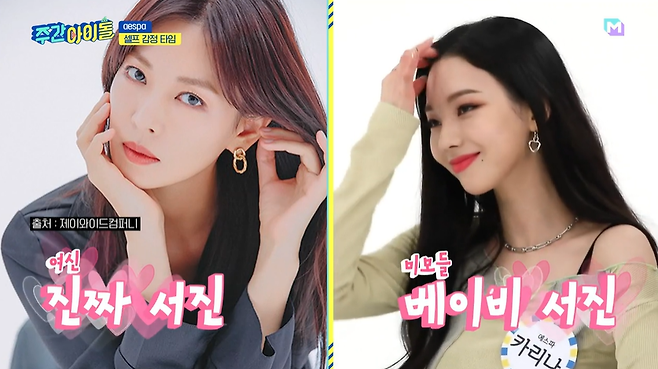 '주간아이돌'에서 개인기 검증의 시간을 가진 에스파. 카리나는 천서진 성대모사 개인기에 도전했어요!